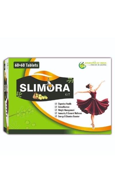 THE SLIMORA KIT IS AN AYURVEDIC SUPPLEMENT CONSISTING OF 60 + 60 TABLETS.